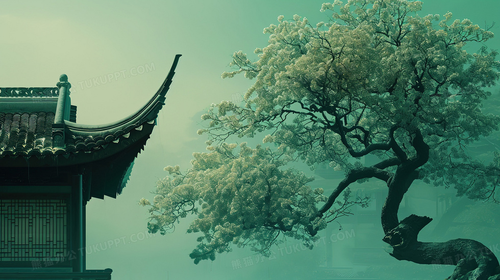 本作品内容为中式古建筑旁的松树插画, 格式为 jpg, 大小4 MB, 图片尺寸为2912 x 1632, 源文件无水印, 欢迎使用熊猫办公。 如认为平台内容涉嫌侵权,可通过邮件:tousu@tukuppt.com提出书面通知,我们将及时处理。