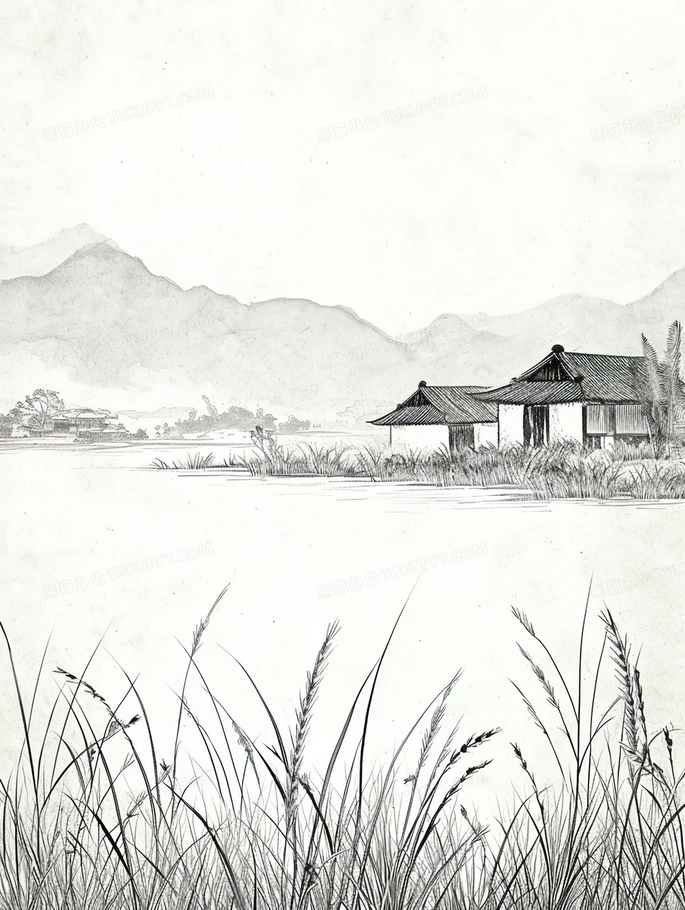 本作品内容为中国传统乡村山水插画, 格式为 jpg, 大小3 MB, 图片尺寸为1856 x 2464, 源文件无水印, 欢迎使用熊猫办公。 如认为平台内容涉嫌侵权,可通过邮件:tousu@tukuppt.com提出书面通知,我们将及时处理。