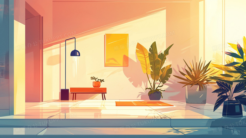 本作品内容为简约入户玄关装修陈设场景插画, 格式为 jpg, 大小2 MB, 图片尺寸为2912 x 1632, 源文件无水印, 欢迎使用熊猫办公。 如认为平台内容涉嫌侵权,可通过邮件:tousu@tukuppt.com提出书面通知,我们将及时处理。