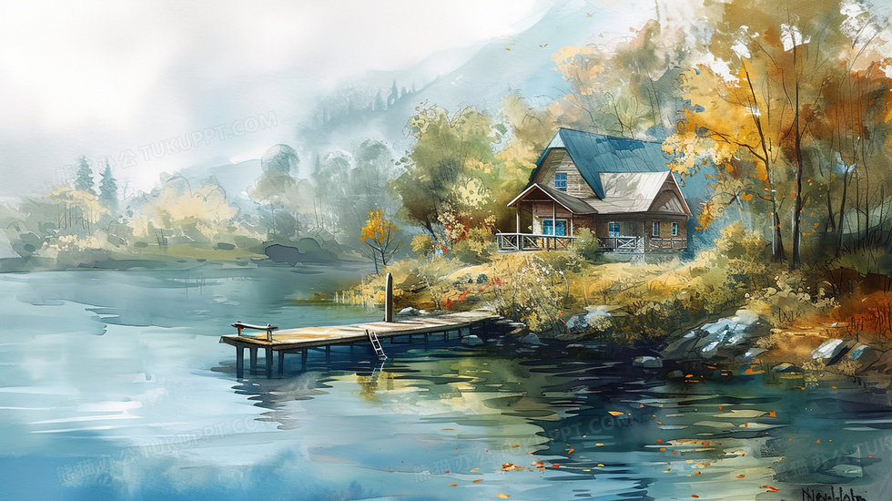 本作品内容为春季森林湖边小木屋风光插画, 格式为 jpg, 大小4 MB, 图片尺寸为2912 x 1632, 源文件无水印, 欢迎使用熊猫办公。 如认为平台内容涉嫌侵权,可通过邮件:tousu@tukuppt.com提出书面通知,我们将及时处理。