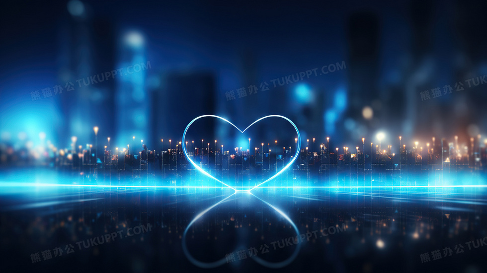 本作品内容为蓝色科技爱心背景, 格式为 jpg, 大小3 MB, 图片尺寸为2912 x 1632, 作品中背景图片无需修改, 源文件无水印,可以直接使用, 欢迎使用熊猫办公。 如认为平台内容涉嫌侵权,可通过邮件:tousu@tukuppt.com提出书面通知,我们将及时处理。
