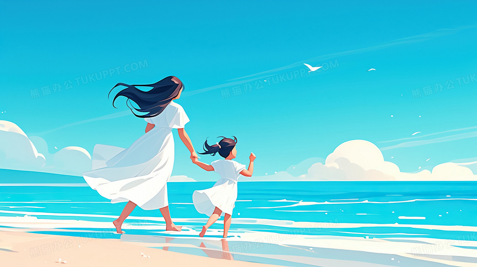 本作品内容为妈妈和孩子在海边母亲节插画, 格式为 jpg, 大小3 MB, 图片尺寸为2912 x 1632, 源文件无水印, 欢迎使用熊猫办公。 如认为平台内容涉嫌侵权,可通过邮件:tousu@tukuppt.com提出书面通知,我们将及时处理。