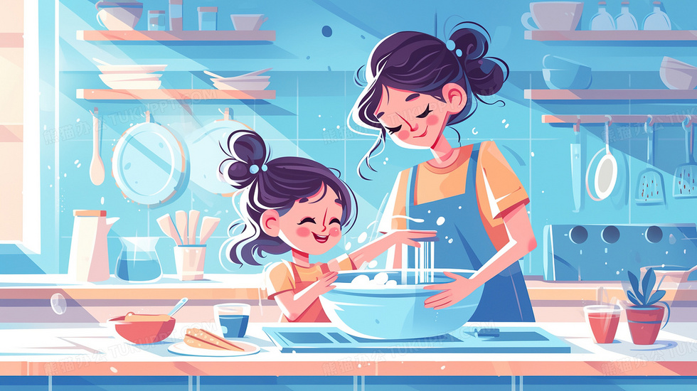 本作品内容为母亲节妈妈和孩子一起做饭插画, 格式为 jpg, 大小3 MB, 图片尺寸为2912 x 1632, 源文件无水印, 欢迎使用熊猫办公。 如认为平台内容涉嫌侵权,可通过邮件:tousu@tukuppt.com提出书面通知,我们将及时处理。