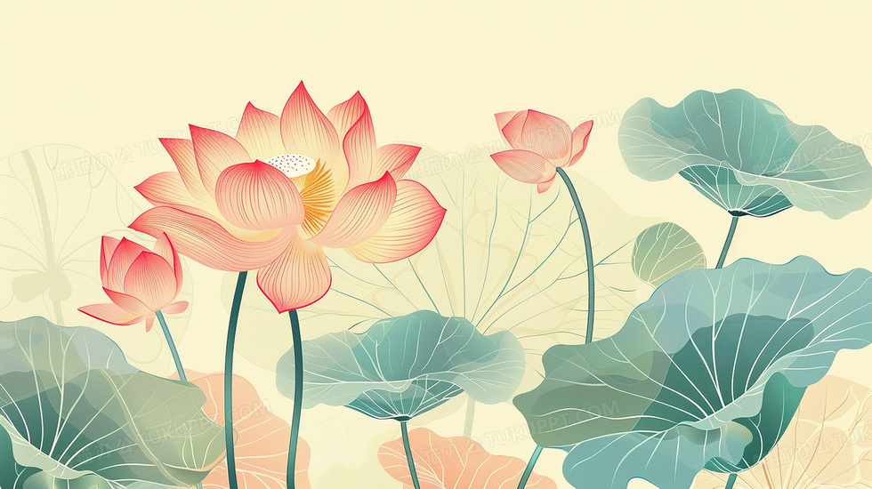 本作品内容为夏日唯美池塘莲花插画, 格式为 jpg, 大小4 MB, 图片尺寸为2912 x 1632, 源文件无水印, 欢迎使用熊猫办公。 如认为平台内容涉嫌侵权,可通过邮件:tousu@tukuppt.com提出书面通知,我们将及时处理。
