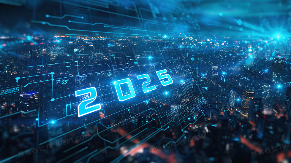 本作品内容为蓝色科技风格2025艺术字背景, 格式为 jpg, 大小4 MB, 图片尺寸为2912 x 1632, 作品中背景图片无需修改, 源文件无水印,可以直接使用, 欢迎使用熊猫办公。 如认为平台内容涉嫌侵权,可通过邮件:tousu@tukuppt.com提出书面通知,我们将及时处理。