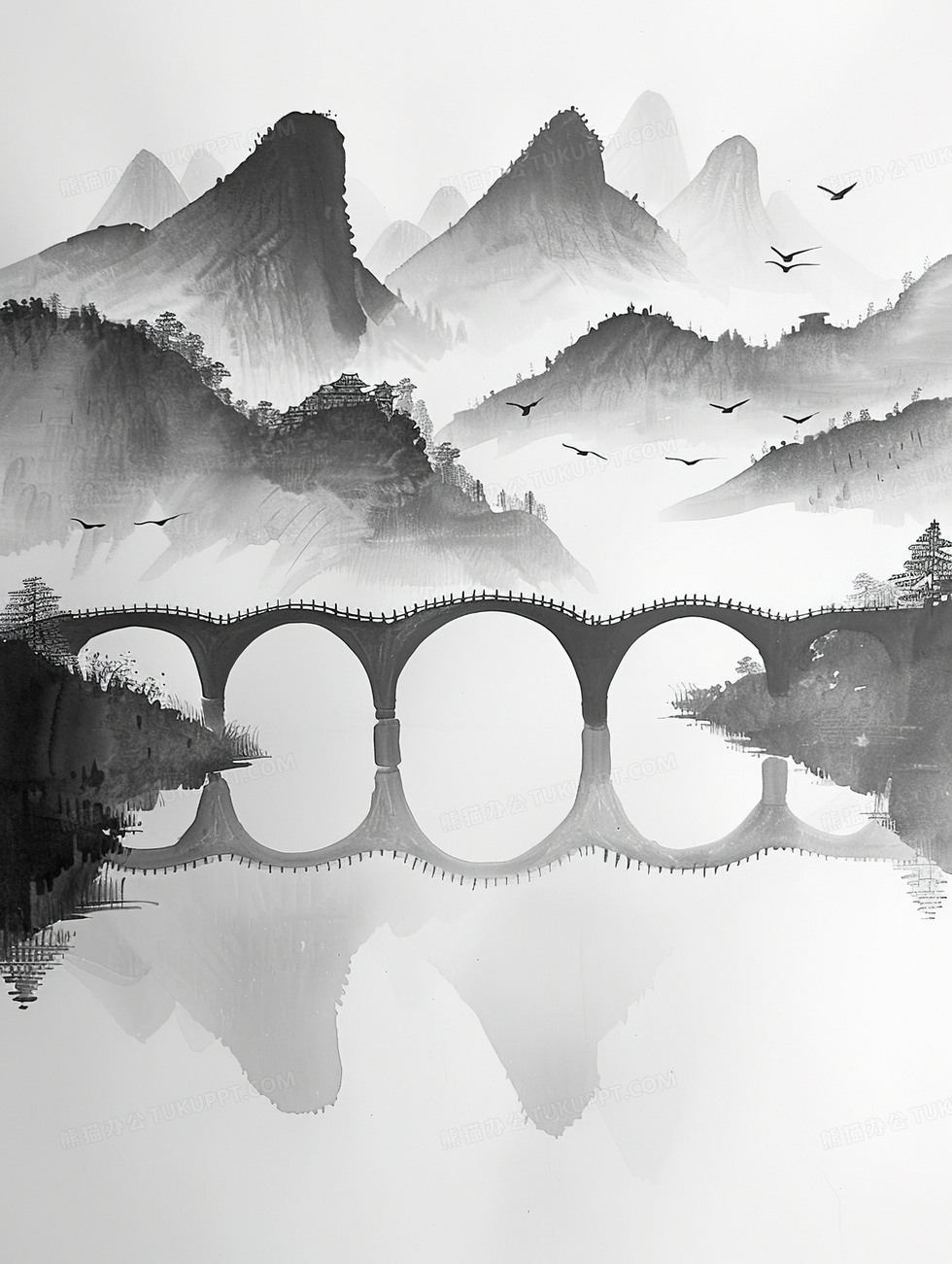 本作品内容为古风石桥水墨背景, 格式为 jpg, 大小3 MB, 图片尺寸为1856 x 2464, 作品中背景图片无需修改, 源文件无水印,可以直接使用, 欢迎使用熊猫办公。 如认为平台内容涉嫌侵权,可通过邮件:tousu@tukuppt.com提出书面通知,我们将及时处理。