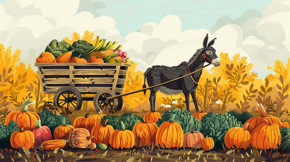 本作品内容为丰收装满瓜果的驴车插画, 格式为 jpg, 大小4 MB, 图片尺寸为2912 x 1632, 源文件无水印, 欢迎使用熊猫办公。 如认为平台内容涉嫌侵权,可通过邮件:tousu@tukuppt.com提出书面通知,我们将及时处理。