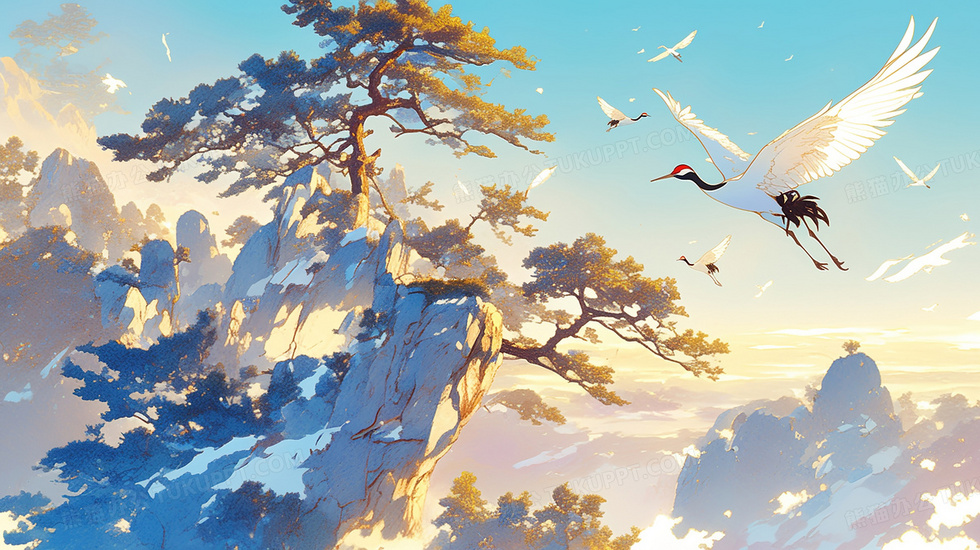 本作品内容为森林里的树木仙鹤松鹤图插画, 格式为 jpg, 大小3 MB, 图片尺寸为2912 x 1632, 源文件无水印, 欢迎使用熊猫办公。 如认为平台内容涉嫌侵权,可通过邮件:tousu@tukuppt.com提出书面通知,我们将及时处理。