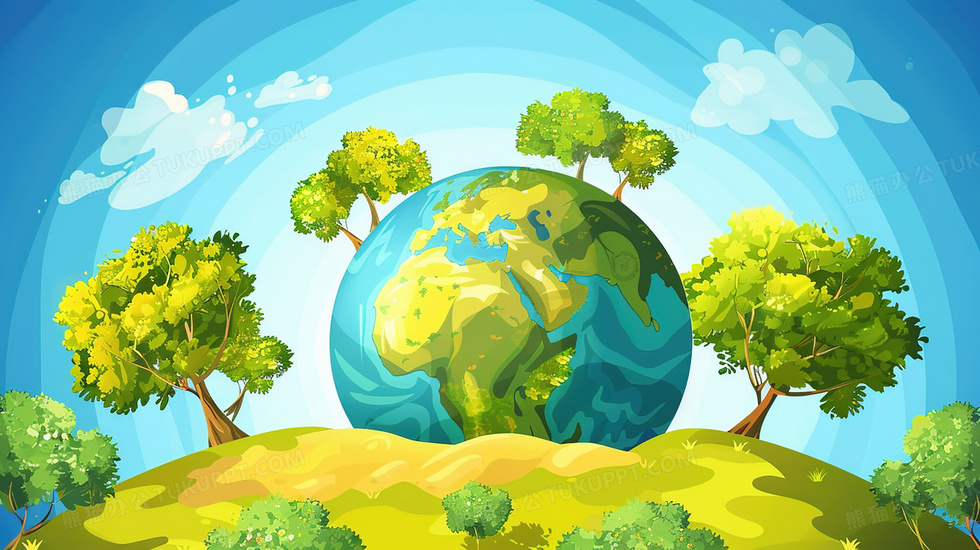 本作品内容为蓝天白云圆形地球绿树插画, 格式为 jpg, 大小3 MB, 图片尺寸为2912 x 1632, 源文件无水印, 欢迎使用熊猫办公。 如认为平台内容涉嫌侵权,可通过邮件:tousu@tukuppt.com提出书面通知,我们将及时处理。