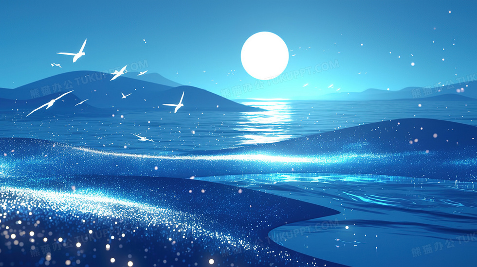 本作品内容为唯美浪漫夜色海边海鸟背景, 格式为 jpg, 大小3 MB, 图片尺寸为2912 x 1632, 作品中背景图片无需修改, 源文件无水印,可以直接使用, 欢迎使用熊猫办公。 如认为平台内容涉嫌侵权,可通过邮件:tousu@tukuppt.com提出书面通知,我们将及时处理。