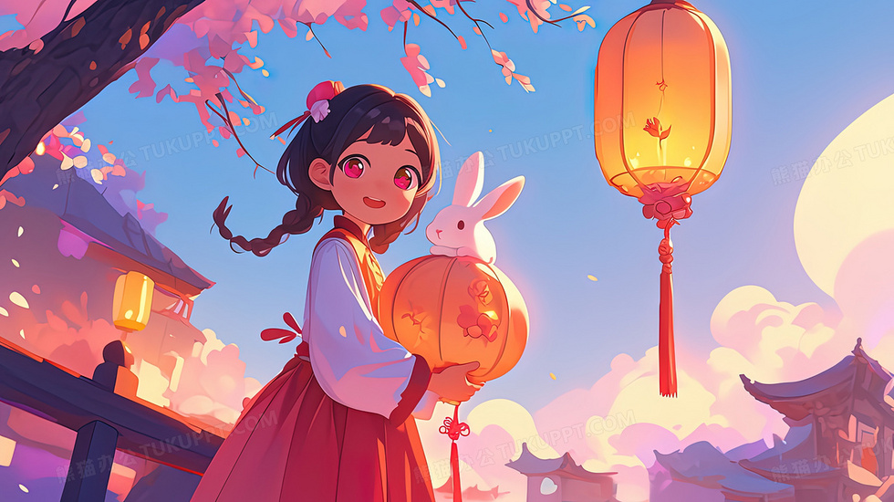 本作品内容为小女孩抱着灯笼和玉兔一起逛灯会插画, 格式为 jpg, 大小2 MB, 图片尺寸为2912 x 1632, 源文件无水印, 欢迎使用熊猫办公。 如认为平台内容涉嫌侵权,可通过邮件:tousu@tukuppt.com提出书面通知,我们将及时处理。