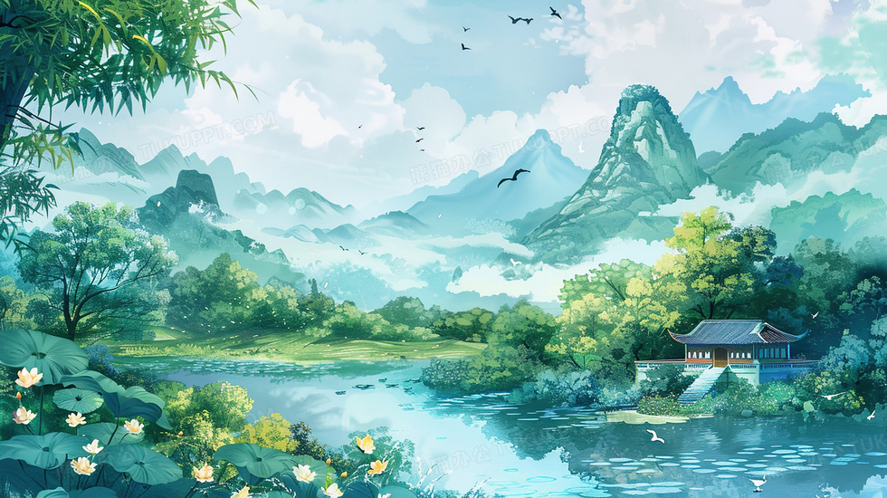 本作品内容为天空山水建筑风景插画, 格式为 jpg, 大小4 MB, 图片尺寸为2912 x 1632, 源文件无水印, 欢迎使用熊猫办公。 如认为平台内容涉嫌侵权,可通过邮件:tousu@tukuppt.com提出书面通知,我们将及时处理。