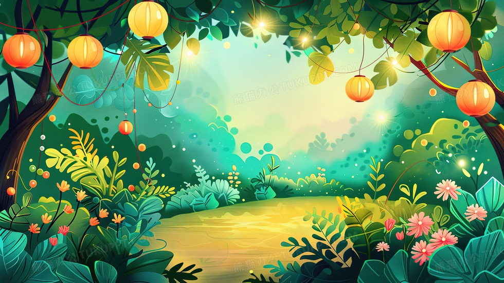 本作品内容为挂着彩灯的植物树叶插画, 格式为 jpg, 大小4 MB, 图片尺寸为2912 x 1632, 源文件无水印, 欢迎使用熊猫办公。 如认为平台内容涉嫌侵权,可通过邮件:tousu@tukuppt.com提出书面通知,我们将及时处理。