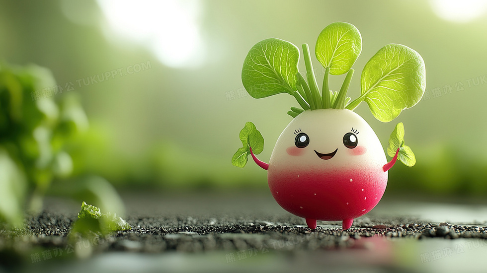 本作品内容为拟人化的卡通现实风格萝卜, 格式为 jpg, 大小2 MB, 图片尺寸为2912 x 1632, 作品中背景图片无需修改, 源文件无水印,可以直接使用, 欢迎使用熊猫办公。 如认为平台内容涉嫌侵权,可通过邮件:tousu@tukuppt.com提出书面通知,我们将及时处理。