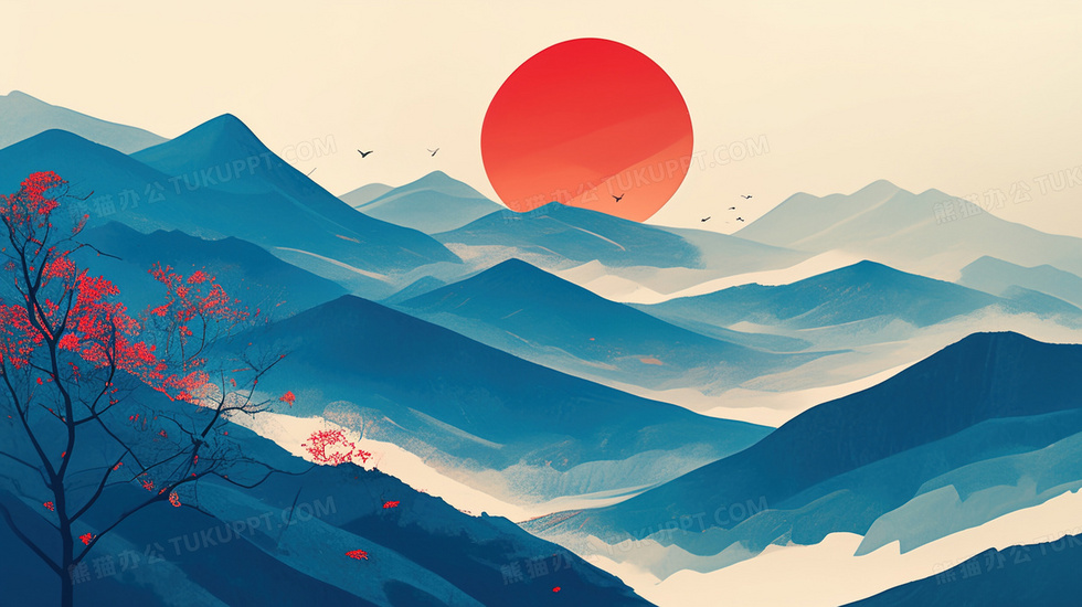 本作品内容为简约风格层次感明显山和夕阳背景, 格式为 jpg, 大小3 MB, 图片尺寸为2912 x 1632, 作品中背景图片无需修改, 源文件无水印,可以直接使用, 欢迎使用熊猫办公。 如认为平台内容涉嫌侵权,可通过邮件:tousu@tukuppt.com提出书面通知,我们将及时处理。