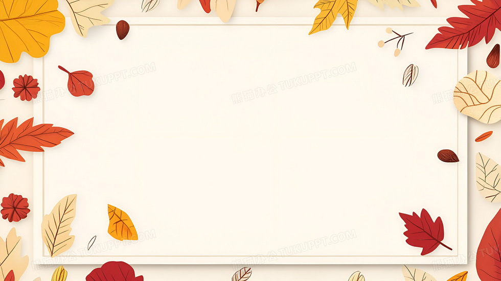 本作品内容为彩色简约秋叶纸张边框背景, 格式为 jpg, 大小2 MB, 图片尺寸为2912 x 1632, 作品中背景图片无需修改, 源文件无水印,可以直接使用, 欢迎使用熊猫办公。 如认为平台内容涉嫌侵权,可通过邮件:tousu@tukuppt.com提出书面通知,我们将及时处理。