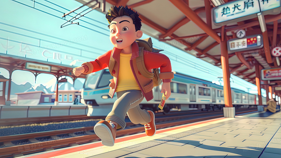 本作品内容为春运抢票成功奔跑赶车的男孩插画, 格式为 jpg, 大小3 MB, 图片尺寸为2912 x 1632, 源文件无水印, 欢迎使用熊猫办公。 如认为平台内容涉嫌侵权,可通过邮件:tousu@tukuppt.com提出书面通知,我们将及时处理。