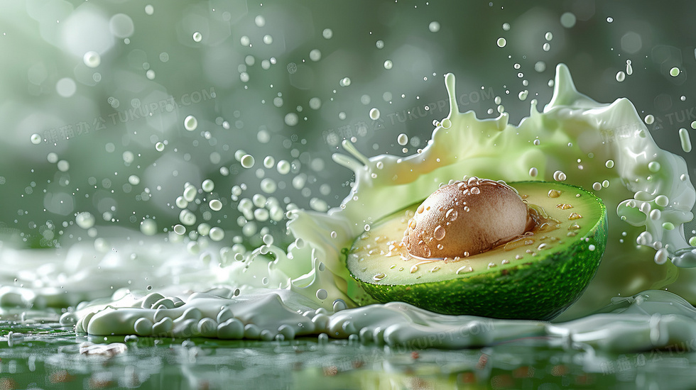 首页 > 背景图库 > 科技艺术 > 海报banner > 清新牛油果液体飞溅背景