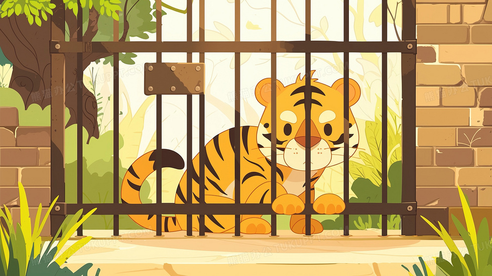 首页 > 插画 > 科技艺术 > 卡通漫画 > 动物园关在笼子里的老虎插画