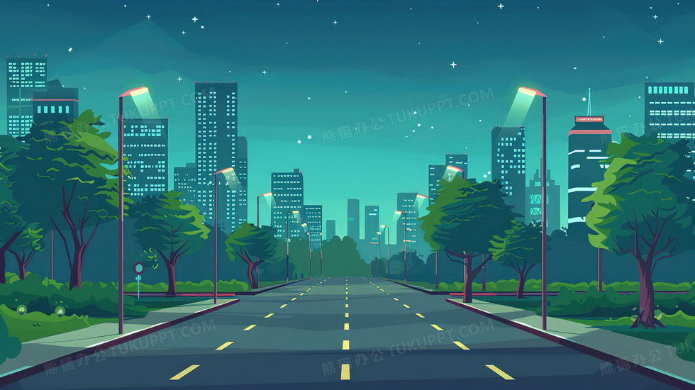 本作品内容为夜色的街道路灯建筑插画, 格式为 jpg, 大小3 MB, 图片尺寸为2912 x 1632, 源文件无水印, 欢迎使用熊猫办公。 如认为平台内容涉嫌侵权,可通过邮件:tousu@tukuppt.com提出书面通知,我们将及时处理。