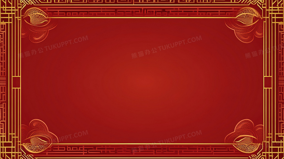 本作品内容为中国红新年边框背景, 格式为 jpg, 大小3 MB, 图片尺寸为2912 x 1632, 作品中背景图片无需修改, 源文件无水印,可以直接使用, 欢迎使用熊猫办公。 如认为平台内容涉嫌侵权,可通过邮件:tousu@tukuppt.com提出书面通知,我们将及时处理。