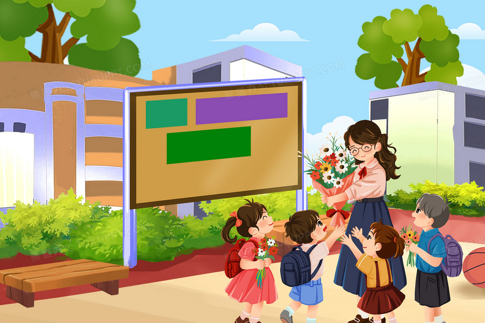 本作品内容为教师节校园布告栏前学生给老师送鲜花插画, 格式为 psd, 大小17 MB, 请使用软件PhotoShop(CS6)打开, 源文件无水印, 欢迎使用熊猫办公。 如认为平台内容涉嫌侵权,可通过邮件:tousu@tukuppt.com提出书面通知,我们将及时处理。