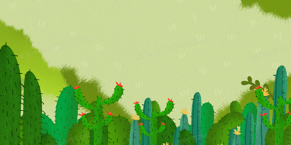 本作品内容为夏季绿色手绘仙人掌背景, 格式为 psd, 大小106 MB, 图片尺寸为4724 x 2362, 作品中背景图片无需修改, 源文件无水印,可以直接使用, 欢迎使用熊猫办公。 如认为平台内容涉嫌侵权,可通过邮件:tousu@tukuppt.com提出书面通知,我们将及时处理。
