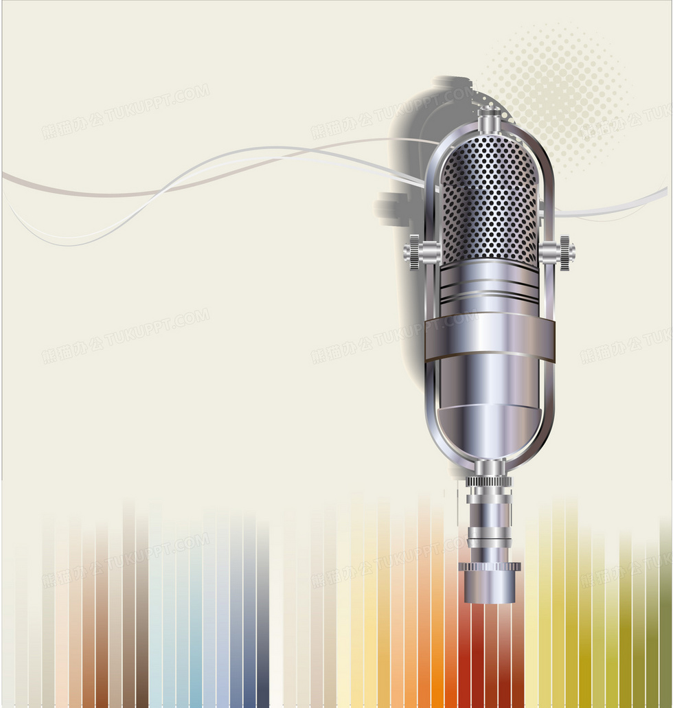 本作品内容为音乐麦克风七彩条纹背景素材, 格式为 ai, 图片尺寸为2362 x 2485, 作品中背景图片无需修改, 源文件无水印,可以直接使用, 欢迎使用熊猫办公。 如认为平台内容涉嫌侵权,可通过邮件:tousu@tukuppt.com提出书面通知,我们将及时处理。