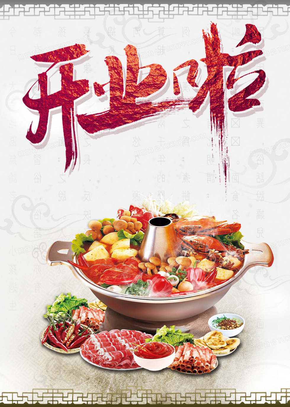 本作品内容为火锅开业啦海报背景模板, 格式为 psd, 图片尺寸为2952 x 4133, 作品中背景图片无需修改, 源文件无水印,可以直接使用, 欢迎使用熊猫办公。 如认为平台内容涉嫌侵权,可通过邮件:tousu@tukuppt.com提出书面通知,我们将及时处理。