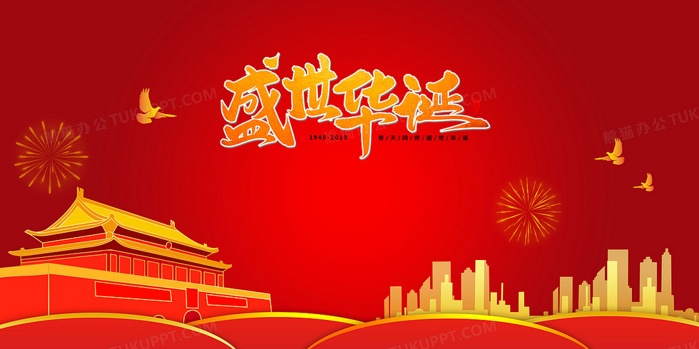 本作品内容为红色党建盛世华诞建国70周年背景, 格式为 psd, 大小27 MB, 图片尺寸为9449 x 4724, 作品中背景图片无需修改, 源文件无水印,可以直接使用, 欢迎使用熊猫办公。 如认为平台内容涉嫌侵权,可通过邮件:tousu@tukuppt.com提出书面通知,我们将及时处理。