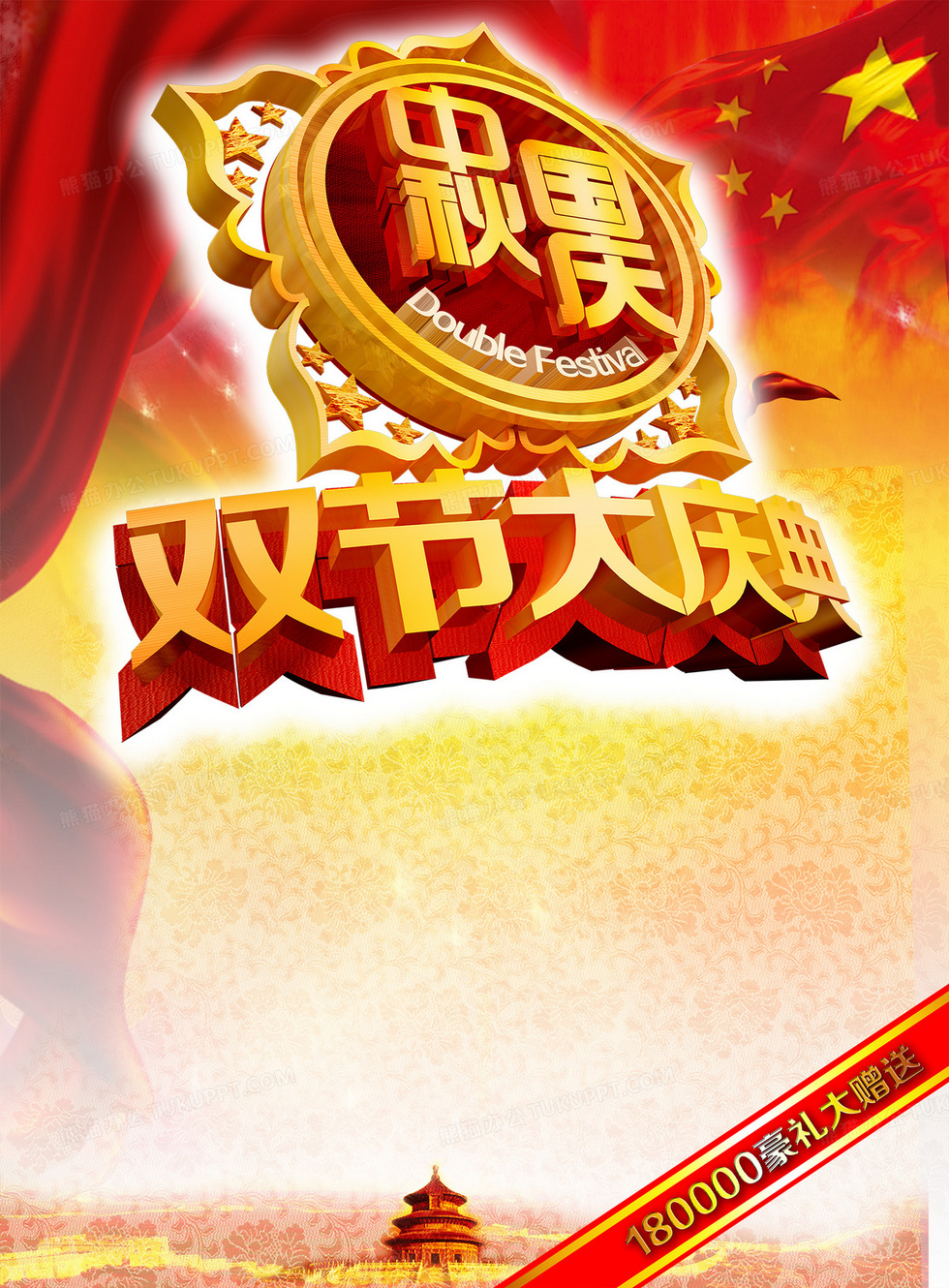 本作品内容为中秋国庆, 格式为 psd, 图片尺寸为1827 x 2480, 作品中背景图片无需修改, 源文件无水印,可以直接使用, 欢迎使用熊猫办公。 如认为平台内容涉嫌侵权,可通过邮件:tousu@tukuppt.com提出书面通知,我们将及时处理。
