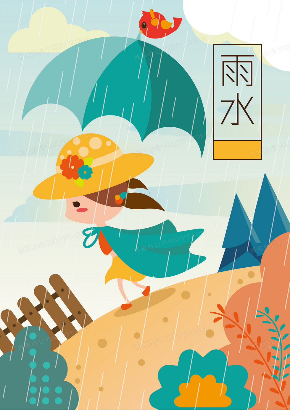 本作品内容为春天雨水节气卡通平面广告背景, 格式为 eps, 图片尺寸为2471 x 3492, 作品中背景图片无需修改, 源文件无水印,可以直接使用, 欢迎使用熊猫办公。 如认为平台内容涉嫌侵权,可通过邮件:tousu@tukuppt.com提出书面通知,我们将及时处理。