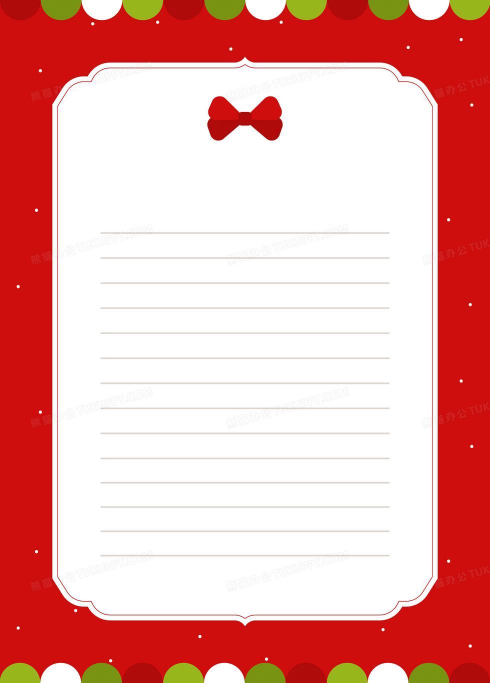 本作品内容为圣诞信纸背景素材, 格式为 ai, 图片尺寸为3631 x 5061, 作品中背景图片无需修改, 源文件无水印,可以直接使用, 欢迎使用熊猫办公。 如认为平台内容涉嫌侵权,可通过邮件:tousu@tukuppt.com提出书面通知,我们将及时处理。