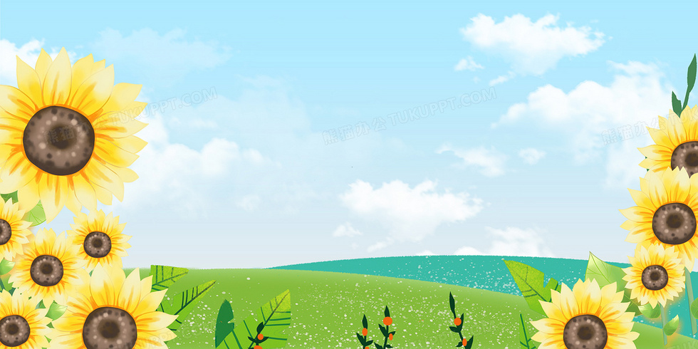 本作品内容为夏季小清新向日葵清爽背景, 格式为 psd, 大小25 MB, 图片尺寸为4724 x 2362, 作品中背景图片无需修改, 源文件无水印,可以直接使用, 欢迎使用熊猫办公。 如认为平台内容涉嫌侵权,可通过邮件:tousu@tukuppt.com提出书面通知,我们将及时处理。