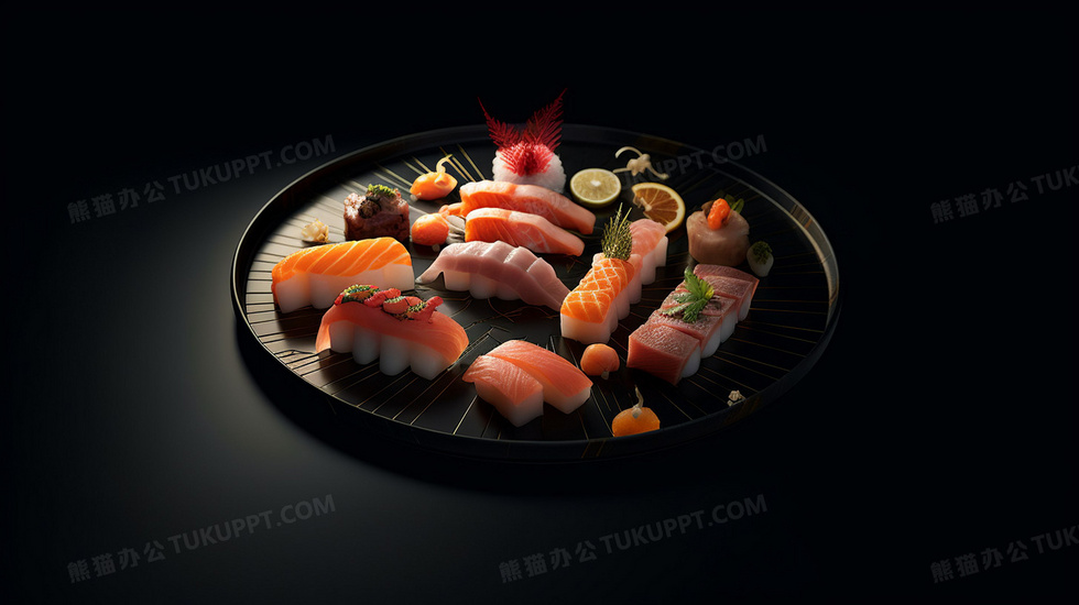 本作品内容为桌面上摆放的一盘精致的三文鱼寿司, 格式为 jpg, 大小1 MB, 图片尺寸为2912 x 1632, 源文件无水印, 欢迎使用熊猫办公。 如认为平台内容涉嫌侵权,可通过邮件:tousu@tukuppt.com提出书面通知,我们将及时处理。