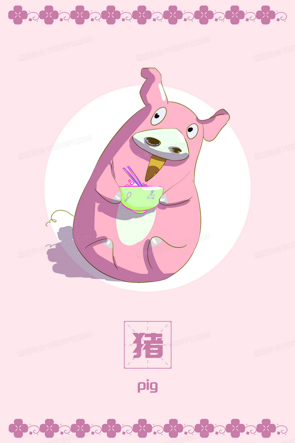 本作品内容为卡通十二生肖之猪早教识字卡插图, 格式为 psd, 大小18 MB, 请使用软件PhotoShop(CC)打开, 源文件无水印, 欢迎使用熊猫办公。 如认为平台内容涉嫌侵权,可通过邮件:tousu@tukuppt.com提出书面通知,我们将及时处理。