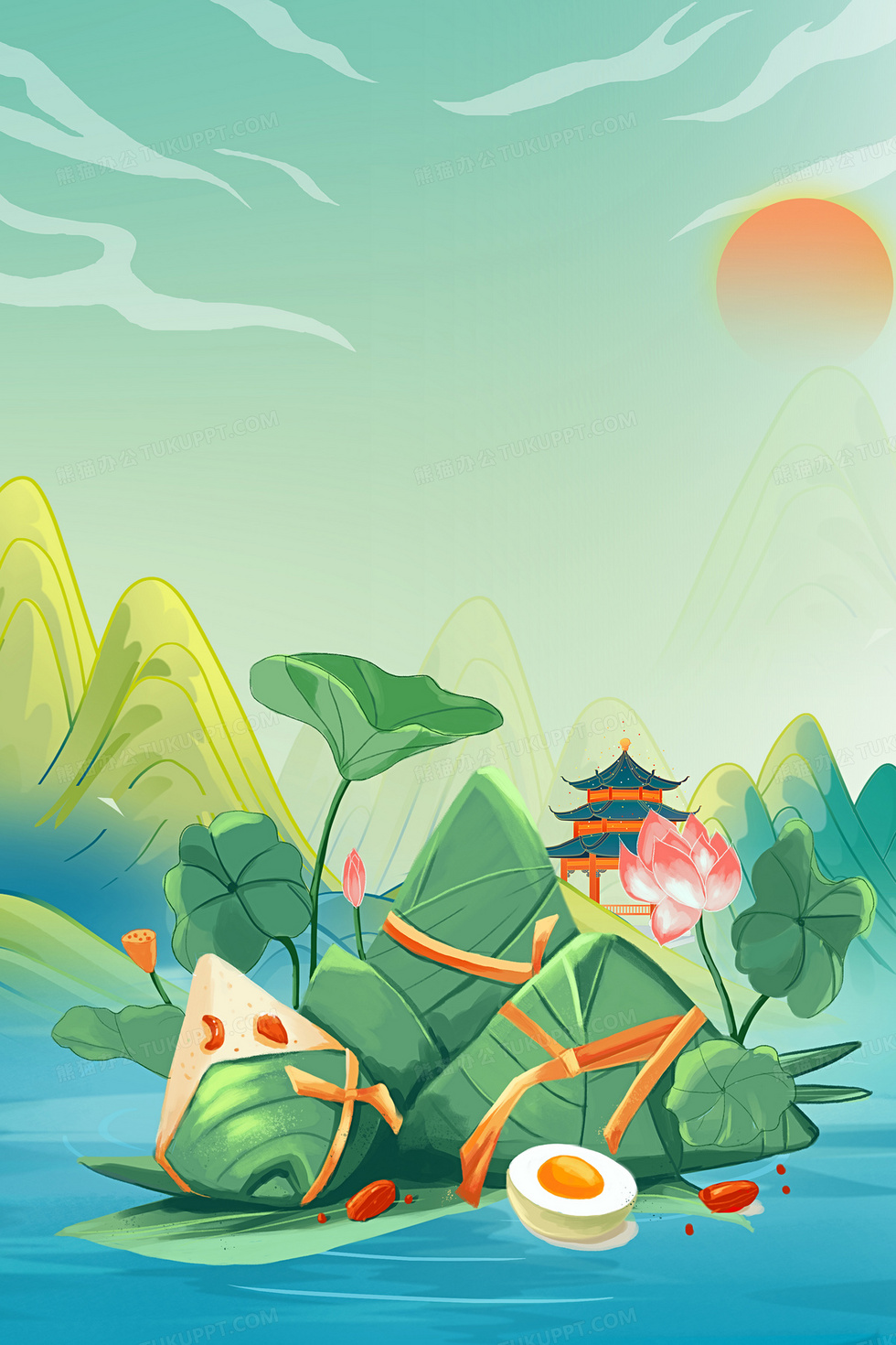 本作品内容为创意国潮风端午节粽子背景, 格式为 psd, 大小86 MB, 图片尺寸为3543 x 5315, 作品中背景图片无需修改, 源文件无水印,可以直接使用, 欢迎使用熊猫办公。 如认为平台内容涉嫌侵权,可通过邮件:tousu@tukuppt.com提出书面通知,我们将及时处理。