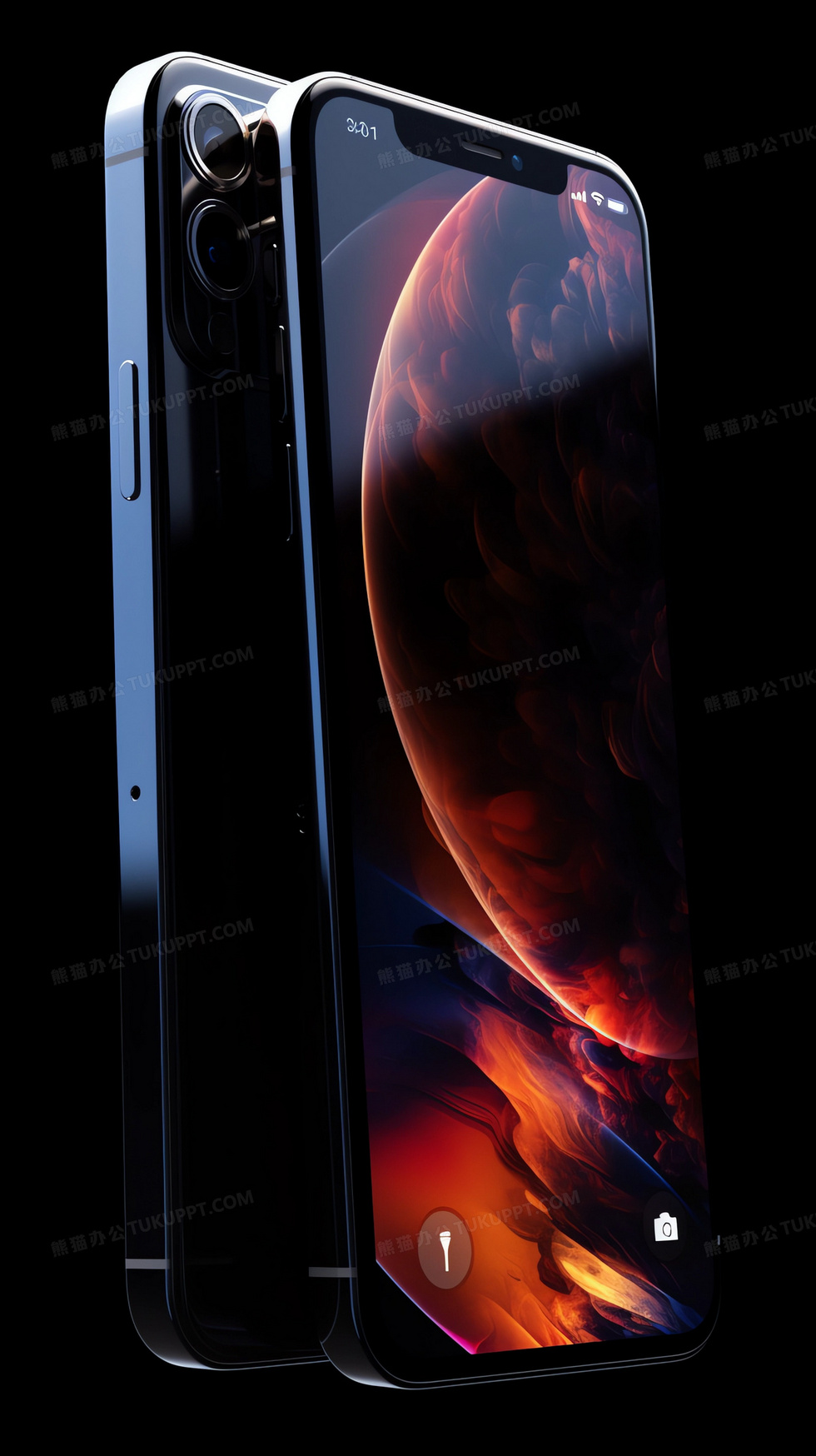 本作品内容为科技感十足的正反双面手机展示模型, 格式为 jpg, 大小2 MB, 图片尺寸为1632 x 2912, 源文件无水印, 欢迎使用熊猫办公。 如认为平台内容涉嫌侵权,可通过邮件:tousu@tukuppt.com提出书面通知,我们将及时处理。