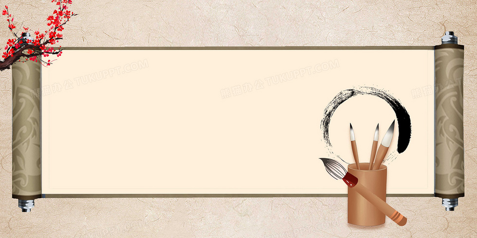 本作品内容为大气中国毛笔梅花卷轴背景, 格式为 psd, 大小56 MB, 图片尺寸为4724 x 2362, 作品中背景图片无需修改, 源文件无水印,可以直接使用, 欢迎使用熊猫办公。 如认为平台内容涉嫌侵权,可通过邮件:tousu@tukuppt.com提出书面通知,我们将及时处理。