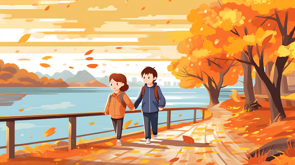 本作品内容为深秋两个卡通人物在公园散步插画, 格式为 jpg, 大小5 MB, 图片尺寸为2912 x 1632, 源文件无水印, 欢迎使用熊猫办公。 如认为平台内容涉嫌侵权,可通过邮件:tousu@tukuppt.com提出书面通知,我们将及时处理。