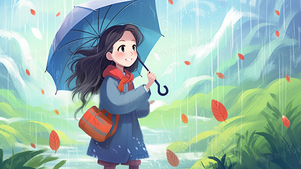 本作品内容为深秋降温在雨中撑着伞唯美落叶插画, 格式为 jpg, 大小7 MB, 图片尺寸为2912 x 1632, 源文件无水印, 欢迎使用熊猫办公。 如认为平台内容涉嫌侵权,可通过邮件:tousu@tukuppt.com提出书面通知,我们将及时处理。