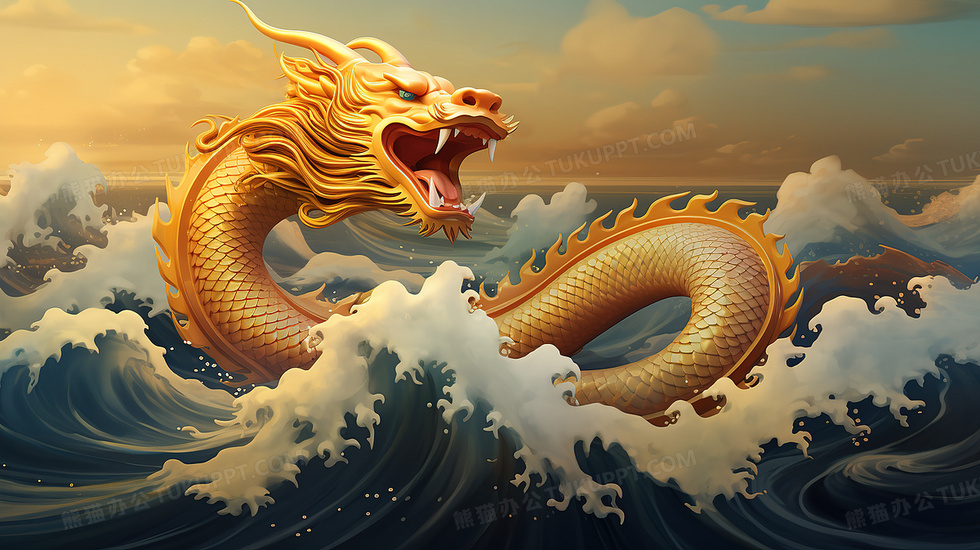本作品内容为神话传说在海面上翻江倒海的金色神龙创意插画, 格式为 jpg, 大小43 MB, 图片尺寸为8736 x 4896, 源文件无水印, 欢迎使用熊猫办公。 如认为平台内容涉嫌侵权,可通过邮件:tousu@tukuppt.com提出书面通知,我们将及时处理。