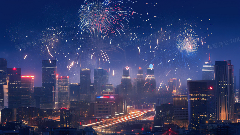本作品内容为城市夜空放烟花庆祝节日插画, 格式为 jpg, 大小8 MB, 图片尺寸为2912 x 1632, 源文件无水印, 欢迎使用熊猫办公。 如认为平台内容涉嫌侵权,可通过邮件:tousu@tukuppt.com提出书面通知,我们将及时处理。