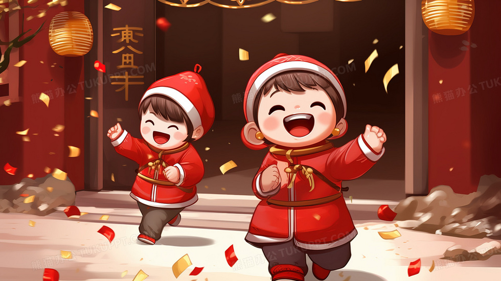 本作品内容为春节在大门口玩耍的孩子插画, 格式为 jpg, 大小5 MB, 图片尺寸为2912 x 1632, 源文件无水印, 欢迎使用熊猫办公。 如认为平台内容涉嫌侵权,可通过邮件:tousu@tukuppt.com提出书面通知,我们将及时处理。