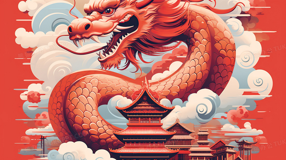 本作品内容为新年喜庆中国龙大好河山建筑插画, 格式为 jpg, 大小6 MB, 图片尺寸为2912 x 1632, 源文件无水印, 欢迎使用熊猫办公。 如认为平台内容涉嫌侵权,可通过邮件:tousu@tukuppt.com提出书面通知,我们将及时处理。