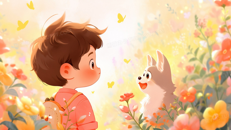 本作品内容为春天鲜花丛中的孩子和小动物插画, 格式为 jpg, 大小2 MB, 图片尺寸为2912 x 1632, 源文件无水印, 欢迎使用熊猫办公。 如认为平台内容涉嫌侵权,可通过邮件:tousu@tukuppt.com提出书面通知,我们将及时处理。