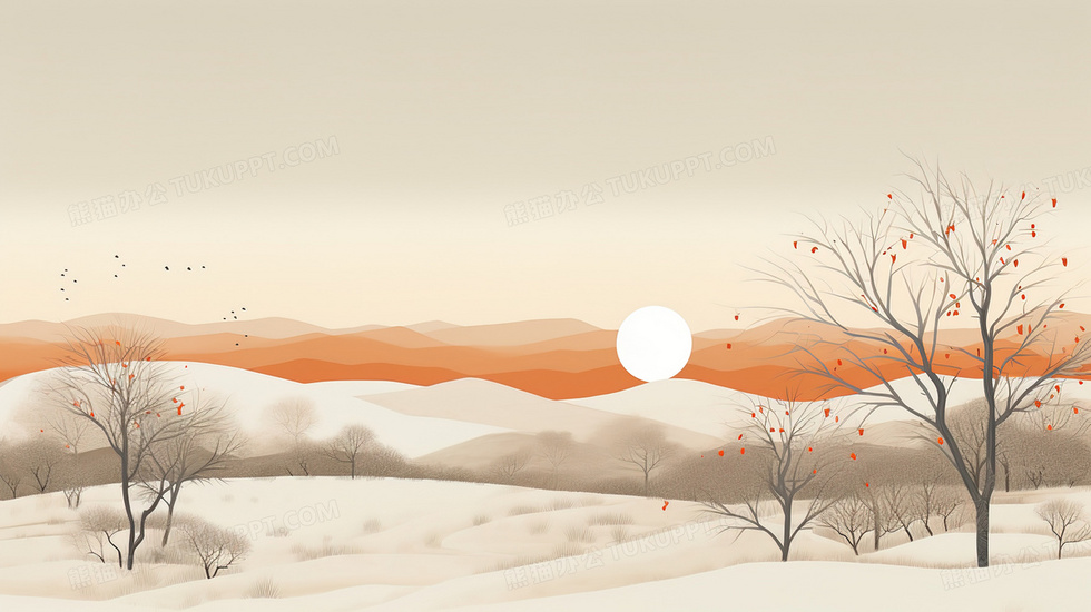 本作品内容为橙色冬季风景雪景插画, 格式为 jpg, 大小2 MB, 图片尺寸为2912 x 1632, 源文件无水印, 欢迎使用熊猫办公。 如认为平台内容涉嫌侵权,可通过邮件:tousu@tukuppt.com提出书面通知,我们将及时处理。