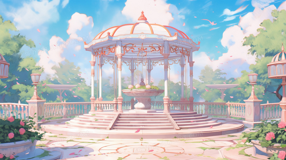 首页 > 插画 > 科技艺术 > 水彩手绘 > 春季公园里精致的凉亭插画