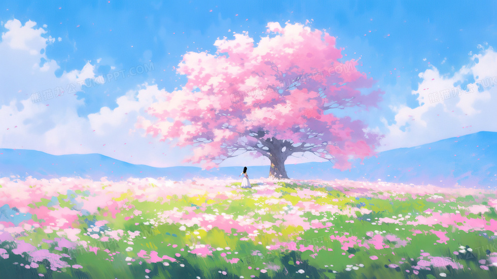 本作品内容为春季粉色草地上的大树插画, 格式为 jpg, 大小3 MB, 图片尺寸为2912 x 1632, 源文件无水印, 欢迎使用熊猫办公。 如认为平台内容涉嫌侵权,可通过邮件:tousu@tukuppt.com提出书面通知,我们将及时处理。