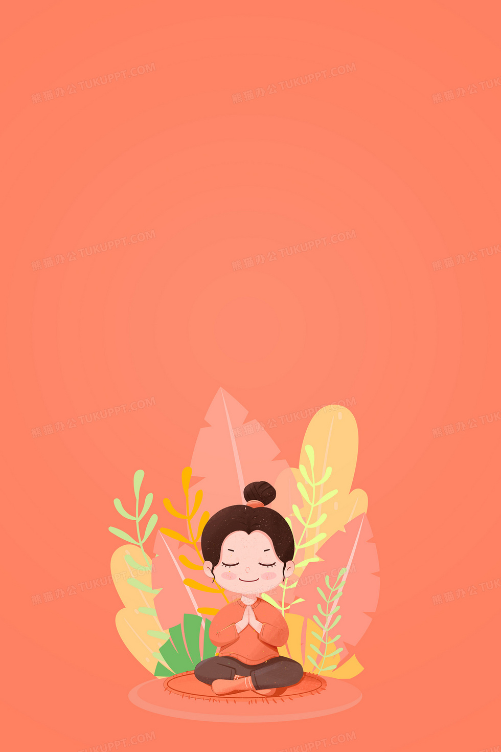 本作品内容为卡通冥想人物合成背景, 格式为 psd, 大小6 MB, 图片尺寸为3543 x 5315, 作品中背景图片无需修改, 源文件无水印,可以直接使用, 欢迎使用熊猫办公。 如认为平台内容涉嫌侵权,可通过邮件:tousu@tukuppt.com提出书面通知,我们将及时处理。
